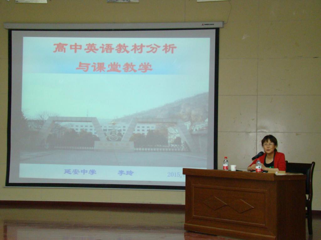 5月26日19:00,延安中学高级教师李玲在外语礼堂做了题为“高中英语教材分析与课堂教学”的讲座。学院2013级、2014级教育硕士、部分教育硕士导师50多人参加报告会。讲座由李世荣副院长主持。