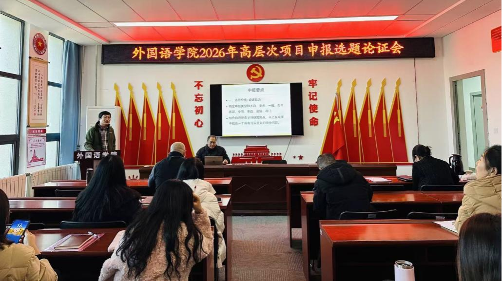 在外语楼513会议室召开了2026年高层次项目选题申报专家论证会。会议特邀我校文学院杨绍固教授担任指导专家,学院科研副院长王会刚主持会议,拟申报2026年度高层次项目的20余位教师参加了本次论证会。