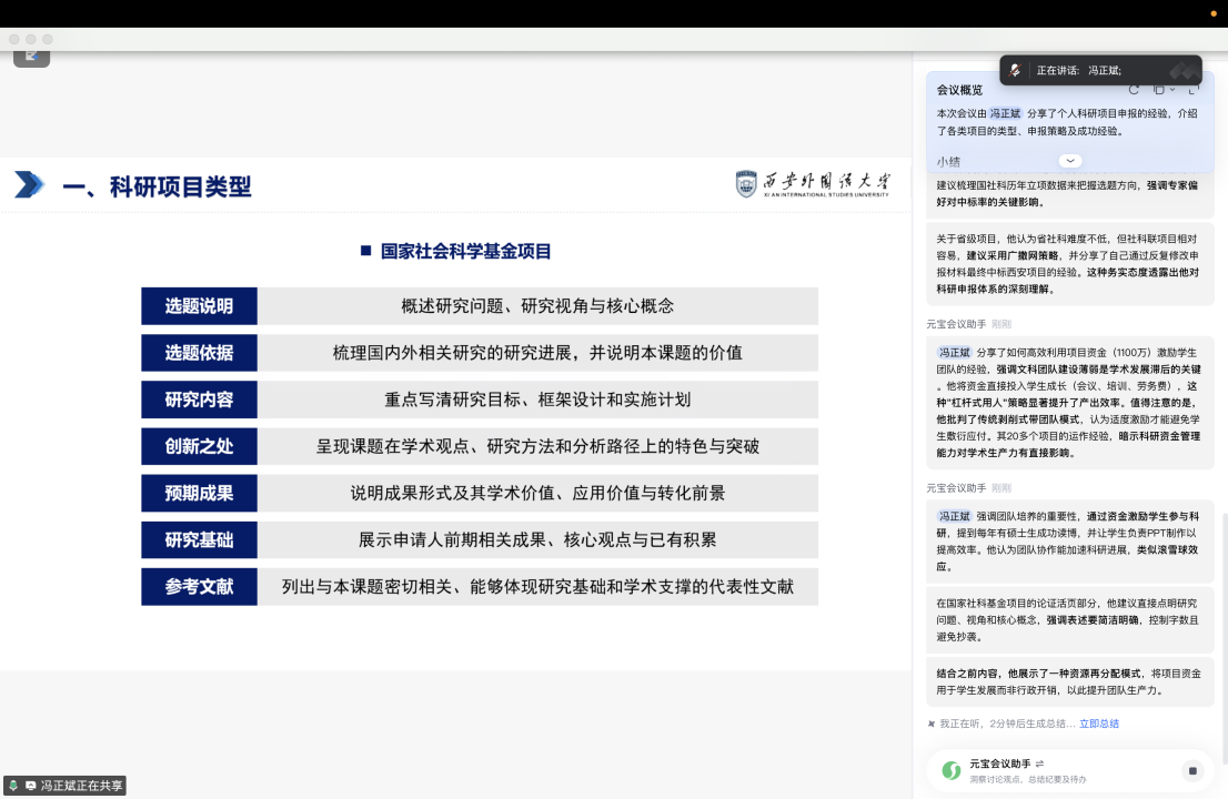 通过腾讯会议平台举办了第五次国家社科基金项目申报专题辅导会。会议特邀西安外国语大学英文学院院长冯正斌教授作专题辅导,由外语学院副院长常琅教授主持,本年度申报国社科基金项目的8位教师及其他教师共计20余人参加会议。