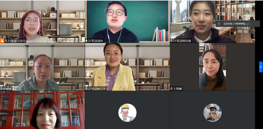 本次论坛中,王欣月,师芳萌,杨文华,周玮等四位同学分别围绕“《圣经》翻译对中国文化的影响”、“功能对等指导下习近平演讲稿的翻译分析——以2020-2021官媒发布的中英双语演讲稿为例”、“目的论视角下的《墨子》英译本对比分析研究——以《非攻》上、中、下为例”、“功能对等理论下陕北民歌的英译本分析——以《神仙挡不住人想人》两个译本为例”,四个选题以PPT的形式进行了学术汇报。分别从选题依据、研究问题、基本思路、预期目标、遇到的主要问题等方面作了详细的阐述。