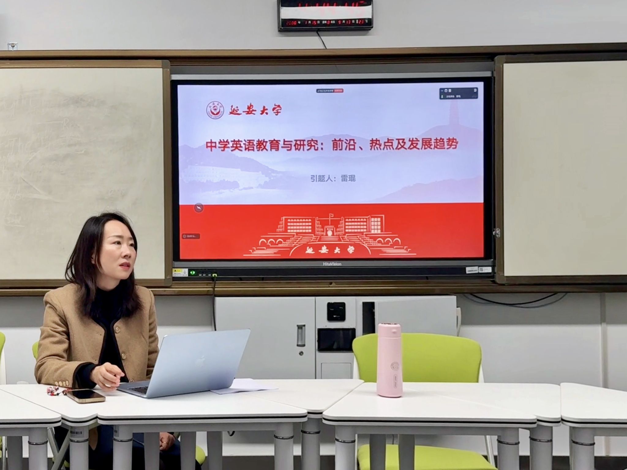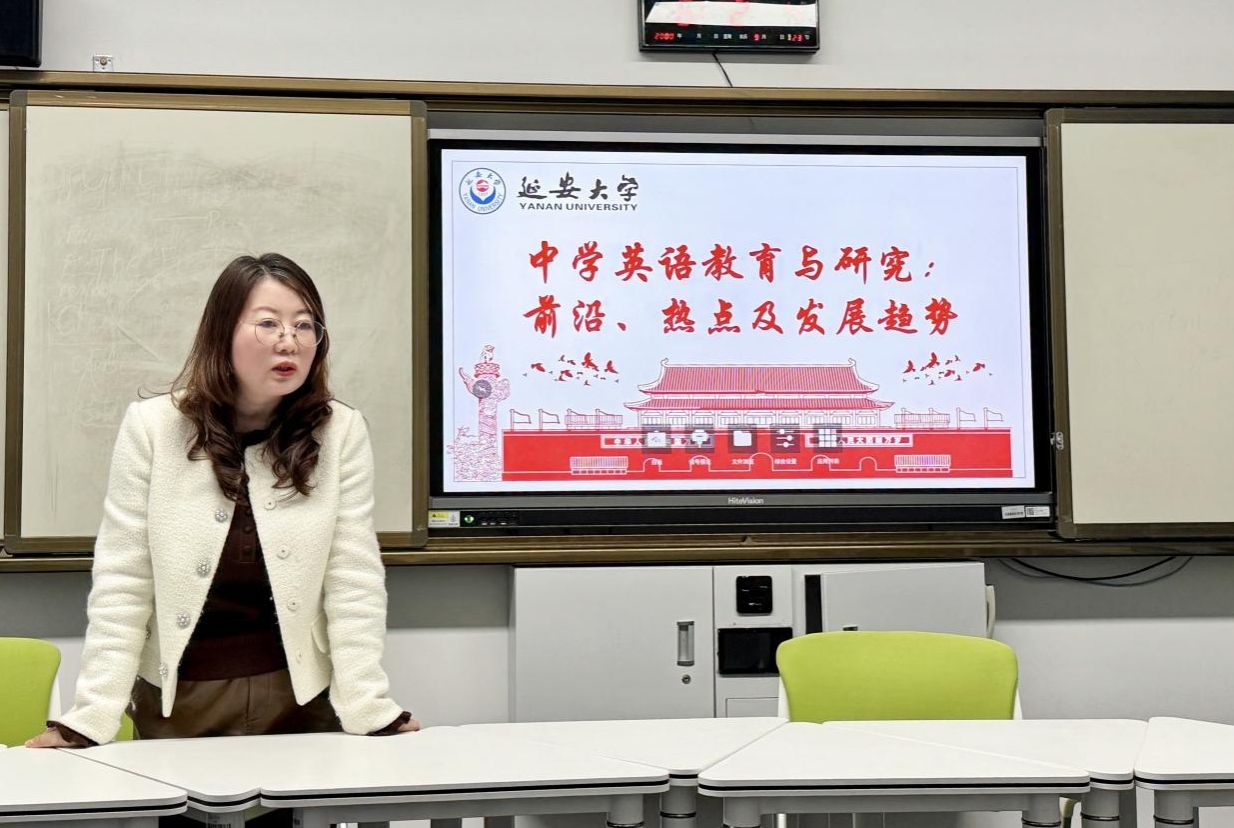 雷琨教授以《中学英语教育与研究:前沿、热点及发展趋势》为题作开场分享。她指出,在生成式人工智能重塑教育生态的背景下,教育部及地方教育政策持续推动教育教学创新,全国外语学校工作研究会第39届年会亦聚焦“人工智能时代外国语学校的实践与思考”,彰显外语教育发展的新趋势。雷教授从AI与外语教学融合、核心素养落地、课程改革深化、研究方法创新等维度展开,强调教师应理性运用AI技术,推动教学模式从“以教师为中心”向“以学生为中心”转型,并在课程设计中注重语篇分析、思维品质培养与文化意识渗透,落实“教—学—评”一体化理念。
