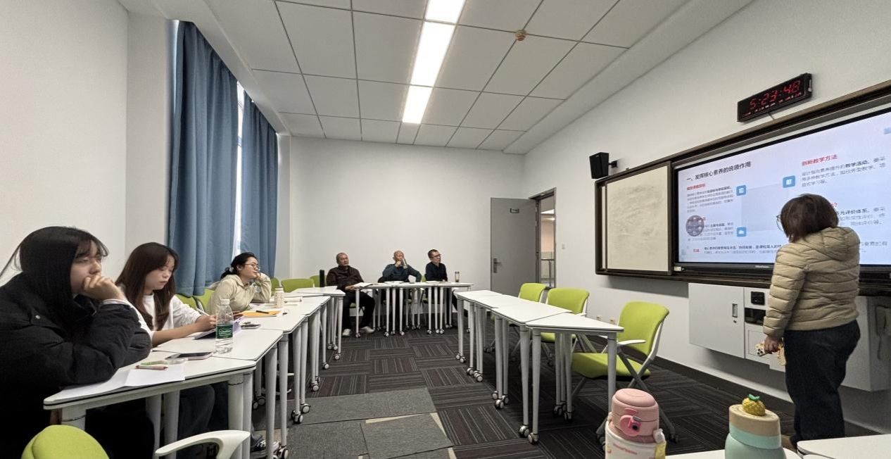 2025级研究生钟仁灵、王越、阮景云、张雨佳分别围绕《义务教育课程标准2022版》进行了专题汇报,汇报围绕“核心素养”主线,详解语言能力、文化意识等四大维度内涵,阐释核心素养统领、分级课程结构等六大课程理念。同时明确三级学段进阶目标,强调教学需践行“学思用创”,融合信息技术与情境化教学,落实“教-学-评”一体化教学理念。2024级研究生依次进行了提问和点评。