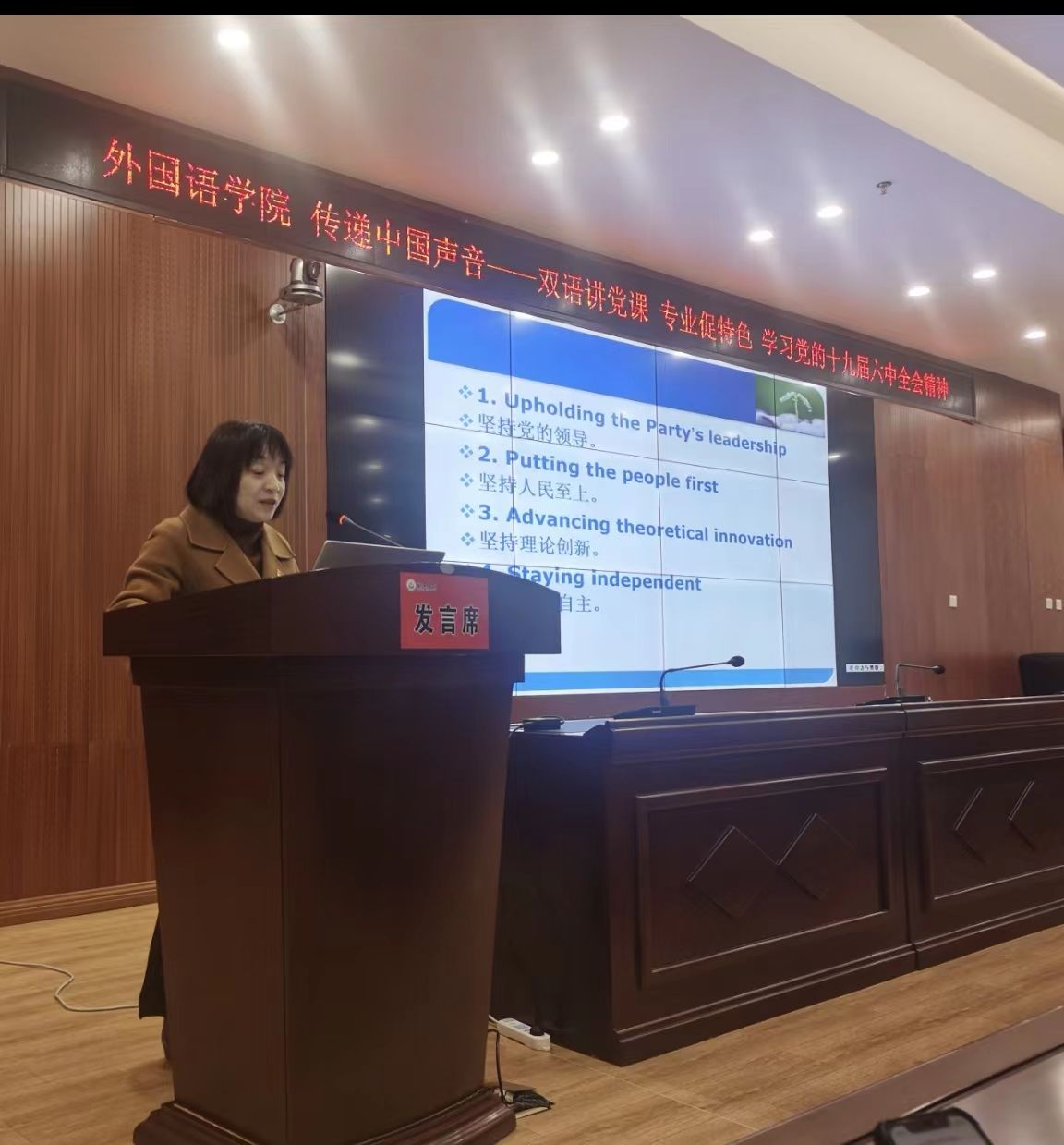 李艳老师在用双语讲党课